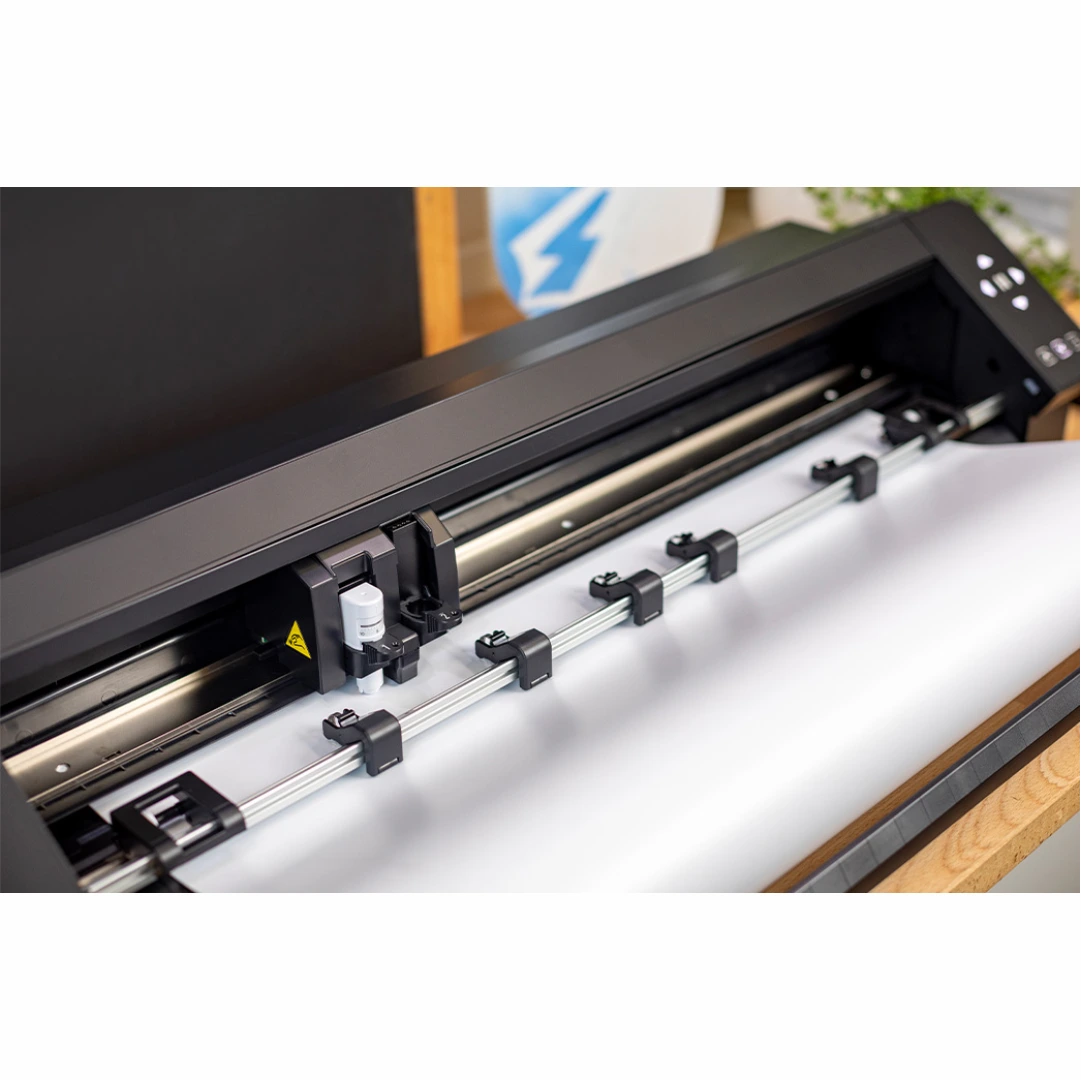 El plotter de corte Silhouette CAMEO PRO MK-II, es una máquina de corte de precisión de hasta 24” pulgadas que puede cortar diversos materiales que nos ofrece nuevas mejoras para su facilidad de uso. Tiene mayor capacidad y velocidad de corte que en los modelos anteriores, contiene un sensor de sensibilidad que escanea el tipo de material que se va a cortar, un modelo de funcionamiento mas silencioso y una parada de emergencia.