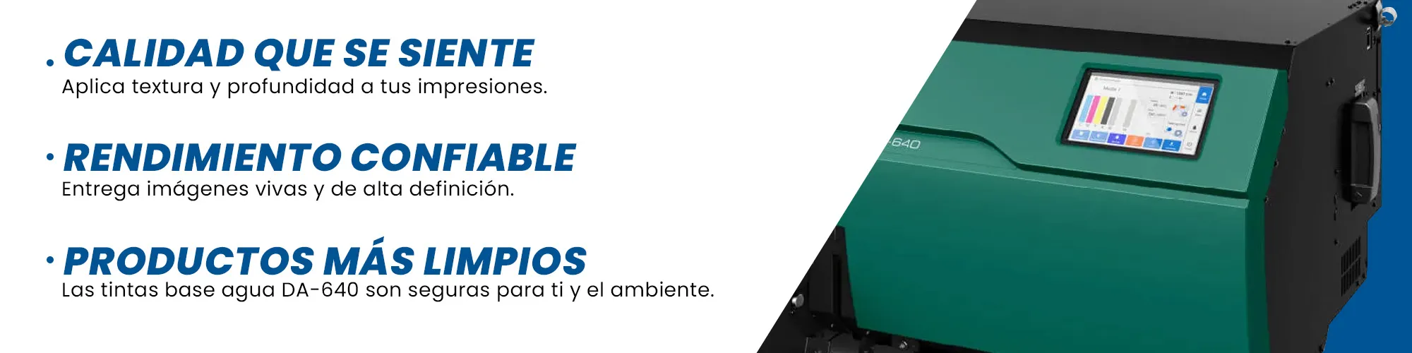 La Impresora DIMENSE Decorative DA-640 es una innovadora impresora dimensional de superficies que permite controlar la estructura del sustrato a través de tintas especializadas, materiales y calor, creando acabados texturizados que cumplen con las expectativas de los profesionales de la industria de decoración e impresión digital.